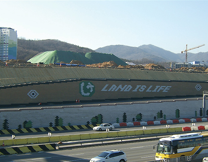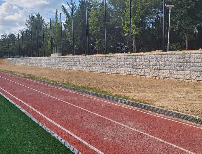보강토 옹벽블록을 천연석 질감의 시스템으로 적용하면 삭막한 옹벽 구조물이 아름다운 전통의 美를 살린 성곽처럼 자연스러움을 더해줍니다. 환경 친화적인 아름다움을 창출하기위해서 개발된 천연석 질감 시스템은 신개념 보강토 옹벽블록으로서 우리나라 국토에서 분포된 유명한 천연석재의 색상과 질감을 그대로 재현한 보강토 옹벽블록은 국내의 어떠한 시공 환경에도 구애받지않고 자연환경과 가장 잘 어우러지고 전통의 美를 살릴 수 있는 제품입니다.