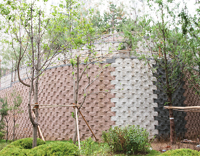 식생축조블록은 공원 단지 사면 녹화용과 하천 저ㆍ고수호안 및 소하천 유속이 빠른 만곡부 수층부 하천 인접부지 확보용 제방으로도 적합하며, 성토부, 절토부 공원 단지의 법면녹화에 최적으로 다목적으로 활용도가 아주 좋은 제품입니다. 사면부의 토지보상비용 절감과 공기단축, 토지이용률 증대 및 하상폭 확대로 유슈량을 많게 하고, 블록 모양이 파형단면으로 유속저항이 커 홍수 예방에 효과적입니다.