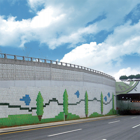 보강토 옹벽블록을 천연석 질감의 시스템으로 적용하면 삭막한 옹벽 구조물이 아름다운 전통의 美를 살린 성곽처럼 자연스러움을 더해줍니다. 환경 친화적인 아름다움을 창출하기위해서 개발된 천연석 질감 시스템은 신개념 보강토 옹벽블록으로서 우리나라 국토에서 분포된 유명한 천연석재의 색상과 질감을 그대로 재현한 보강토 옹벽블록은 국내의 어떠한 시공 환경에도 구애받지않고 자연환경과 가장 잘 어우러지고 전통의 美를 살릴 수 있는 제품입니다.